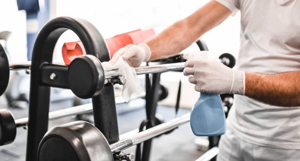 Gym cleaning sanitizes equipment, floors, and surfaces thoroughly.